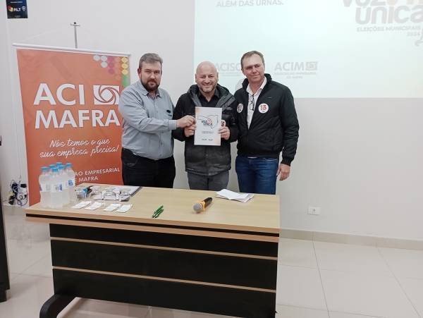 No dia 16/09, a ACI de Mafra entregou a cartilha Voz Única Municipal aos candidatos a prefeito de Mafra para a legislatura 2025-2028. O evento ocorreu no auditório da ACI de Mafra, com todos os candidatos mafrenses: Abel Bicheski (Bello), Celina Dittrich, Celso Strobel e Emerson Maas.