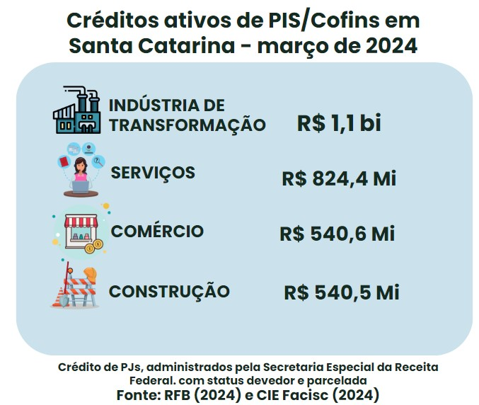 O impacto negativo em Santa Catarina poderia chegar a R$ 3 bilhões, que é o valor de créditos ativos de PIS/Cofins na economia local. A indústria catarinense, por exemplo, possui a terceira maior quantidade do país de créditos ativos de PIS/Cofins (R$ 1,1 bilhão), atrás apenas de São Paulo (R$ 4,1 bilhões) e Rio de Janeiro (R$ 1,4 bilhão) – dados de março de 2024.