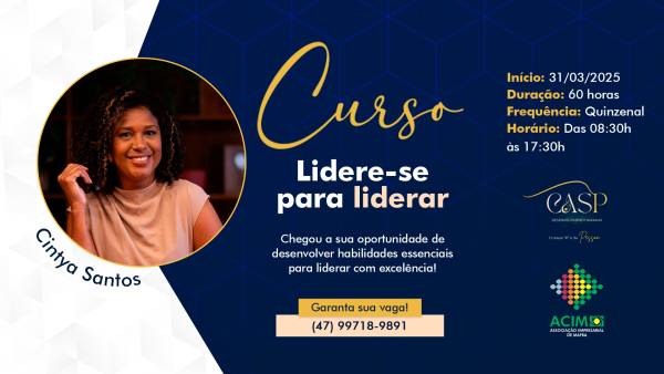 O desenvolvimento de habilidades de liderança é essencial para quem deseja alcançar resultados extraordinários no mundo dos negócios. Pensando nisso, a ACIM, em parceria com a especialista Cintya Santos, traz o curso "Lidere-se para Liderar", um programa completo que capacita gestores e futuros líderes a fortalecerem sua autoliderança e aprimorarem a gestão de pessoas.