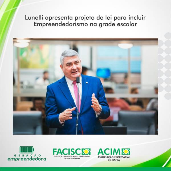 O deputado estadual Antídio Lunelli (MDB) apresentou um projeto de lei na Assembleia Legislativa de SC que propõe incluir a disciplina de empreendedorismo na grade curricular da rede estadual de ensino. A proposta passará pelas comissões da Alesc antes de ser votada em plenário.