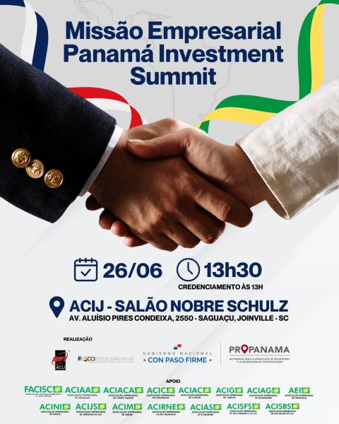 No dia 26 de junho, às 13h30, Joinville será palco de um importante encontro internacional com a chegada da Missão Empresarial Panamá Investment Summit, que será realizada na sede da ACIJ.